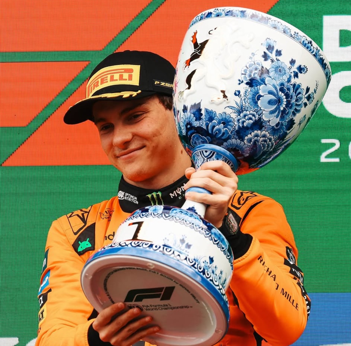 Piastri in trionfo, Norris arrosto. La lotta per il mondiale segna oggi in Olanda una tappa fondamentale della stagione. L’australiano fa suo il gran premio e allunga in classifica mentre il suo compagno e rivale colleziona uno zero, messo fuori a sette giri dalla fine da un guasto al motore, mentre era secondo. Sul podio salgono quindi Verstappen e la rivelazione Hadjar. Poi Russell, Albon e un magnifico Bearman. Le Ferrari trovano il modo di fare peggio di ieri con Hamilton che chiude il suo weekend a muro e Leclerc messo fuori, incolpevole, da Antonelli in un tentativo di sorpasso. Kimi, sesto al traguardo, viene penalizzato di 10 secondi e chiude nelle retrovie.
